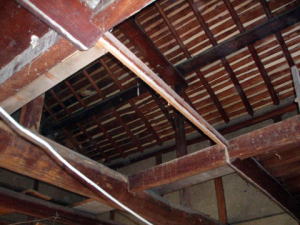 この梁の途切れている所が、ツシの入口。ここに先の梁を取付ます。 |