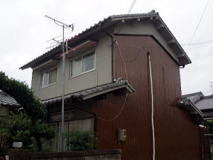 こちらは上の写真と同じく、サッシも取替ALCも貼り終わり何とか形になってきました。