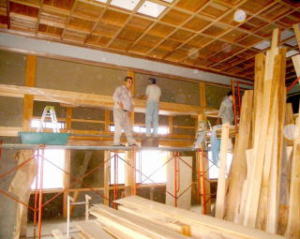 | 本当は、自分が壁を塗りたくてウズウズ 、実は会長さんは玄人顔負けの腕の持ち主塗られた下地壁を見せてもらいましたが。 本職さん、手抜いたらアカンで・・ 左官さん 手ぬいてね〜よ |
